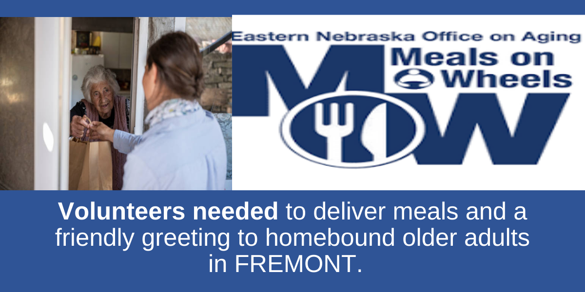 Volunteers needed to deliver meals and a friendly greeting to homebound older adults in FREMONT.