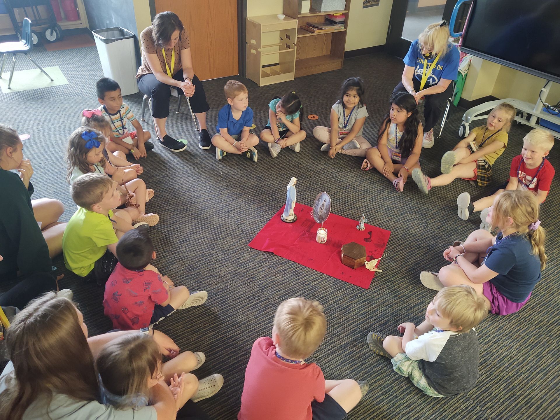 The program for 4 year-olds through 6th graders runs Monday-Friday 9:00a.m.-2:30pm. A team of trained, college-aged youth and seminarians share their faith through catechetical instruction, daily Mass, songs, games, and recess. Lunch is provided.
